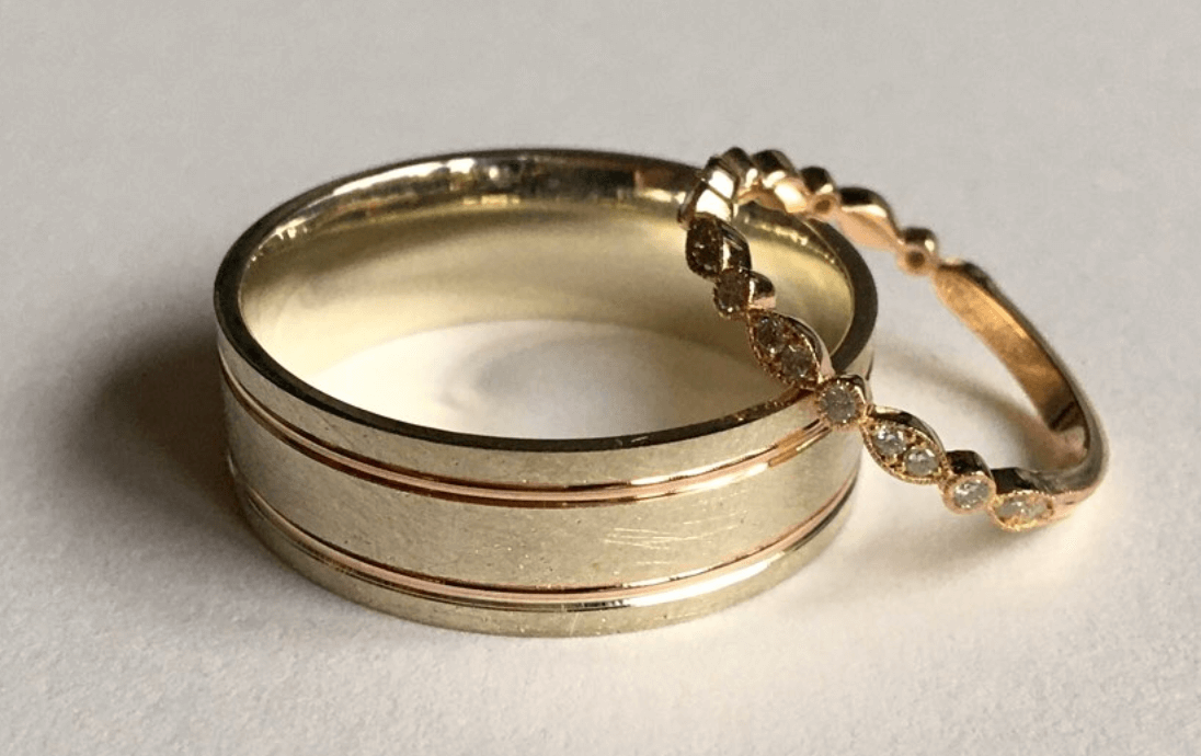 Ryan and Caity’s Rose and White Gold Wedding Rings