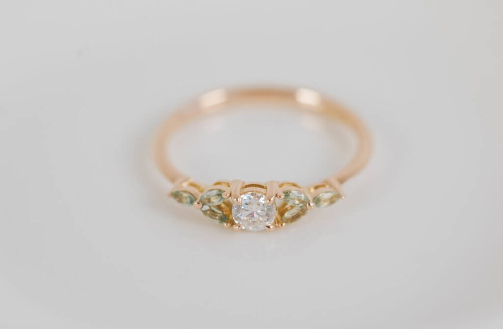 Diamond and Green Sapphire Engagement Ring