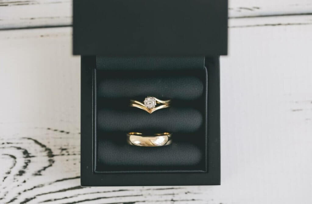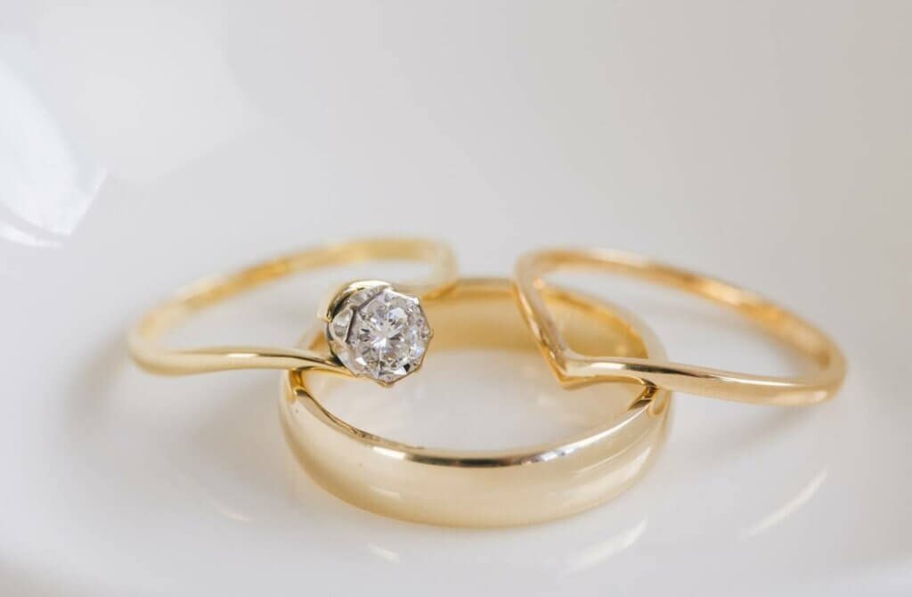 His Mixed Gold Wedding Ring and Her Pave Set Wedding Ring