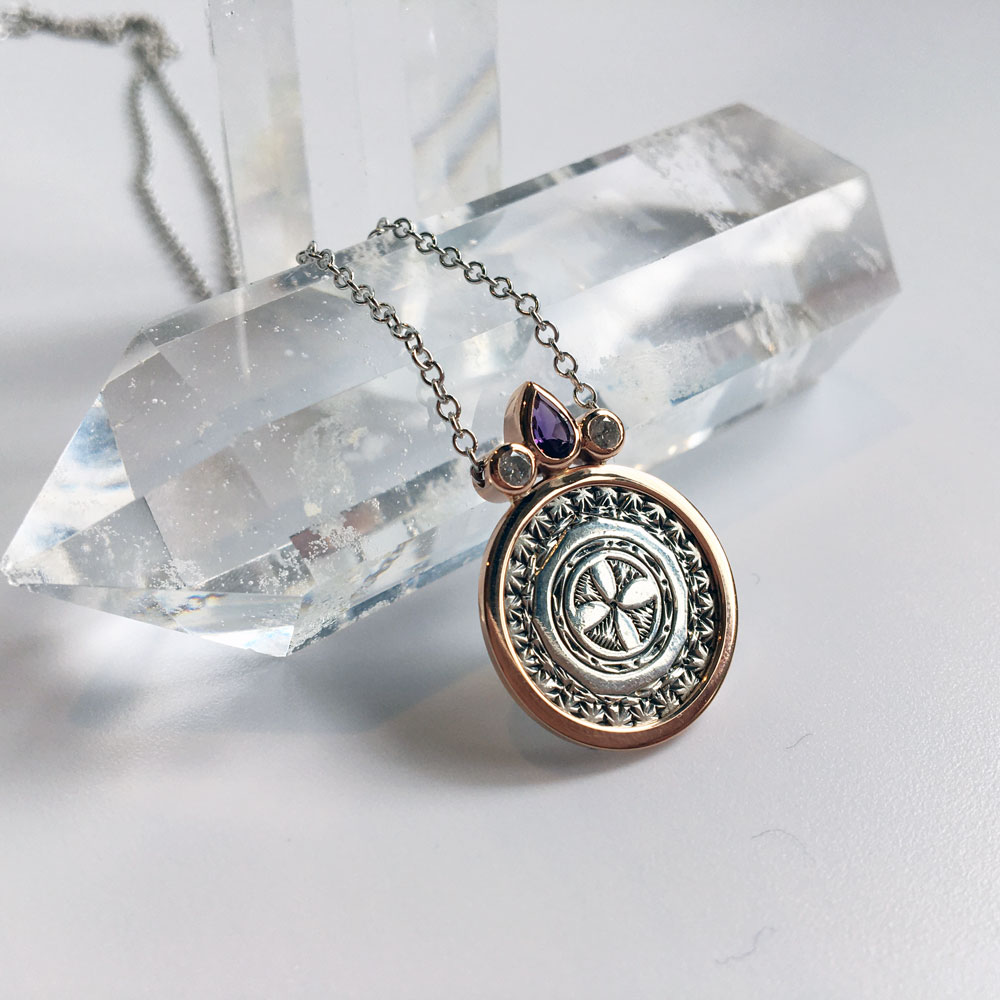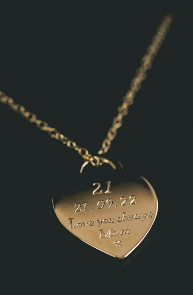 A bespoke yellow gold pendant with hand engraving using the customer’s own 9ct yellow gold