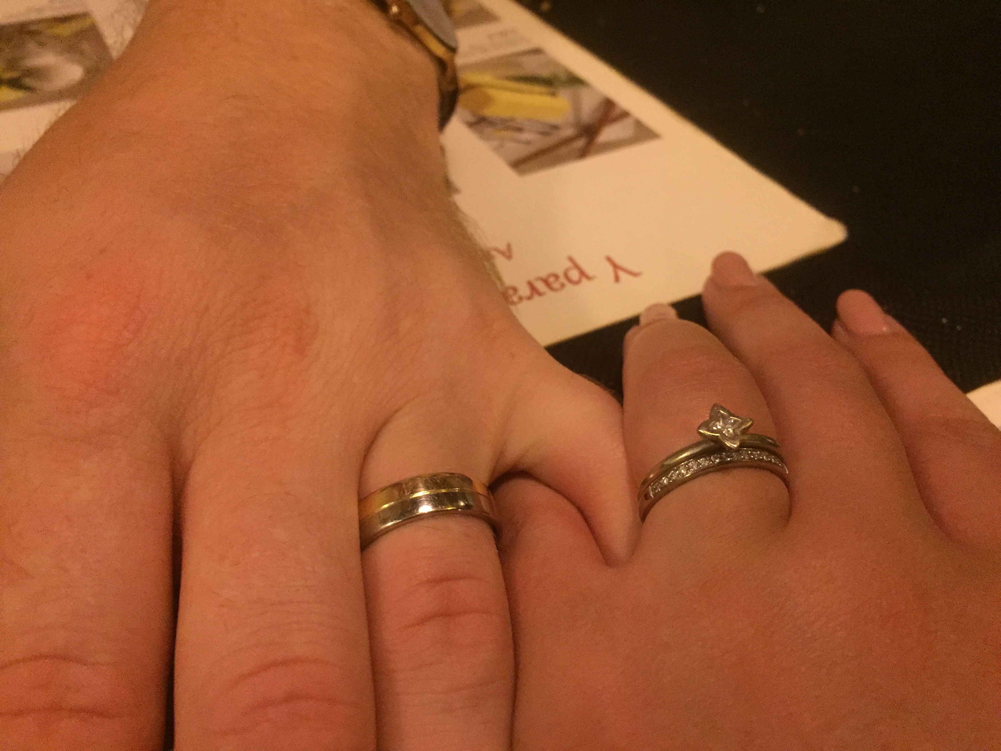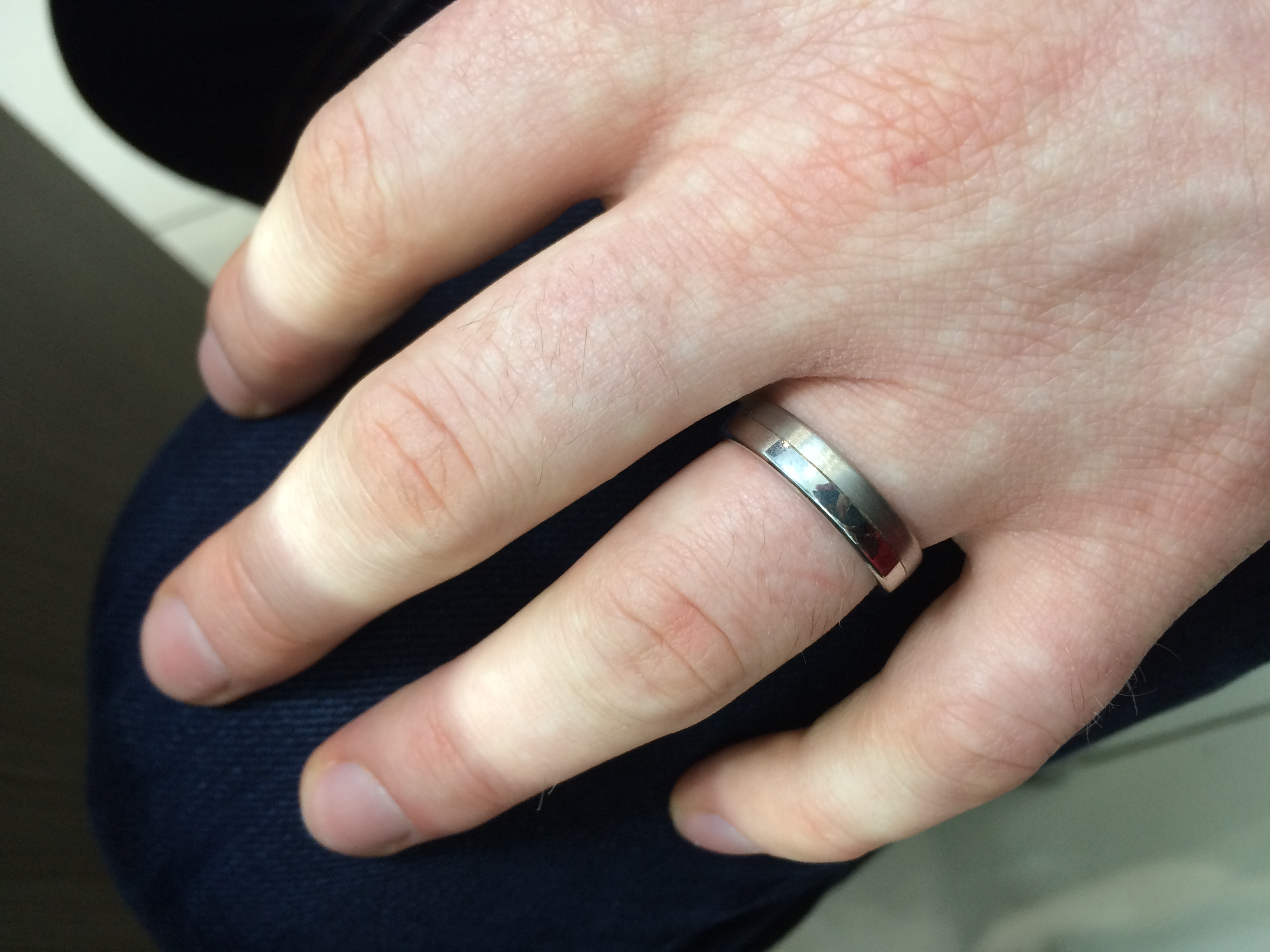 As you can see from this photo from our honeymoon in Barcelona, he has already collected a few scuffs. But as I keep reminding him, each mark is a reminder of the life the ring has had. Rings should be loved and worn and be allowed to collect these small imperfections. A well-made ring can withstand a life time of this abuse!