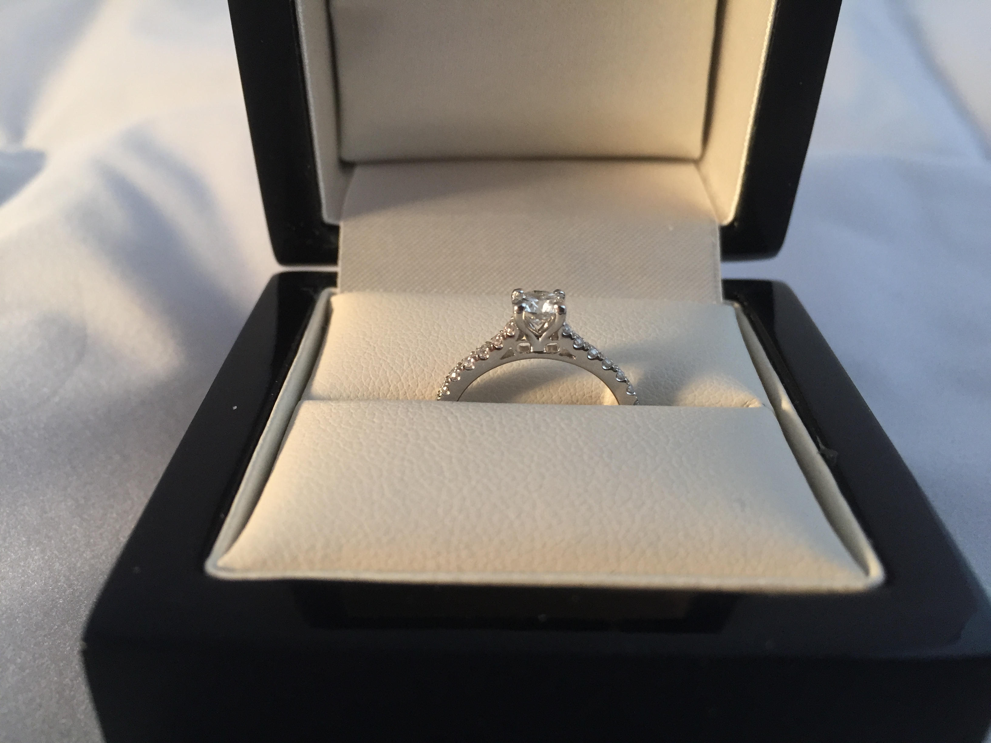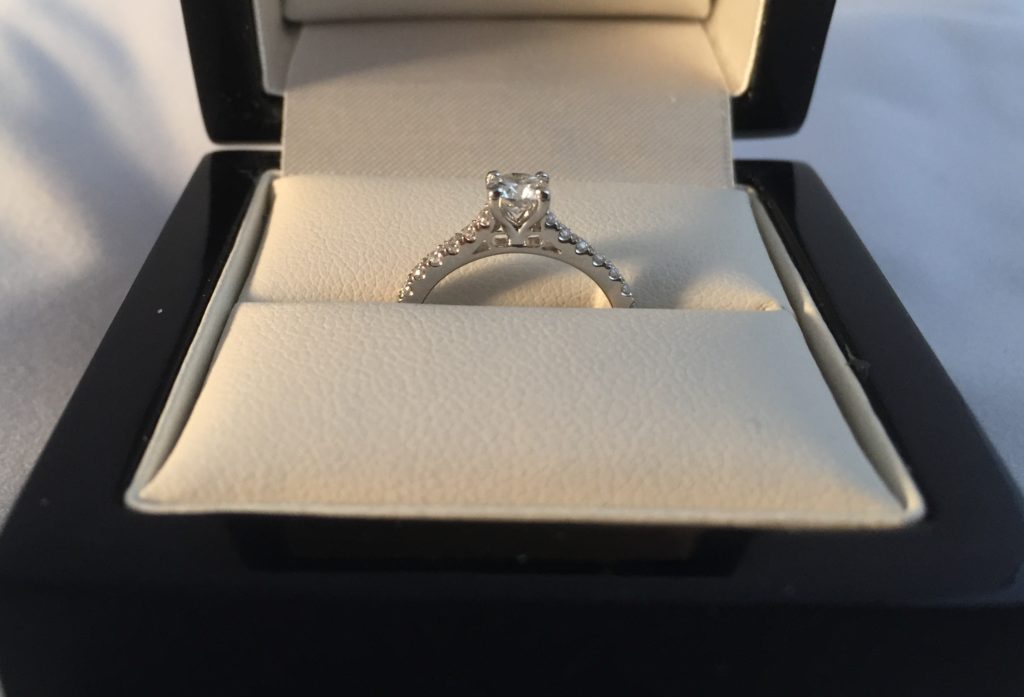 Lee and Charmaine needed a significant resize on Charmaine’s sparkly engagement ring he ordered from me in an average size M ready for his surprise Christmas proposal.
